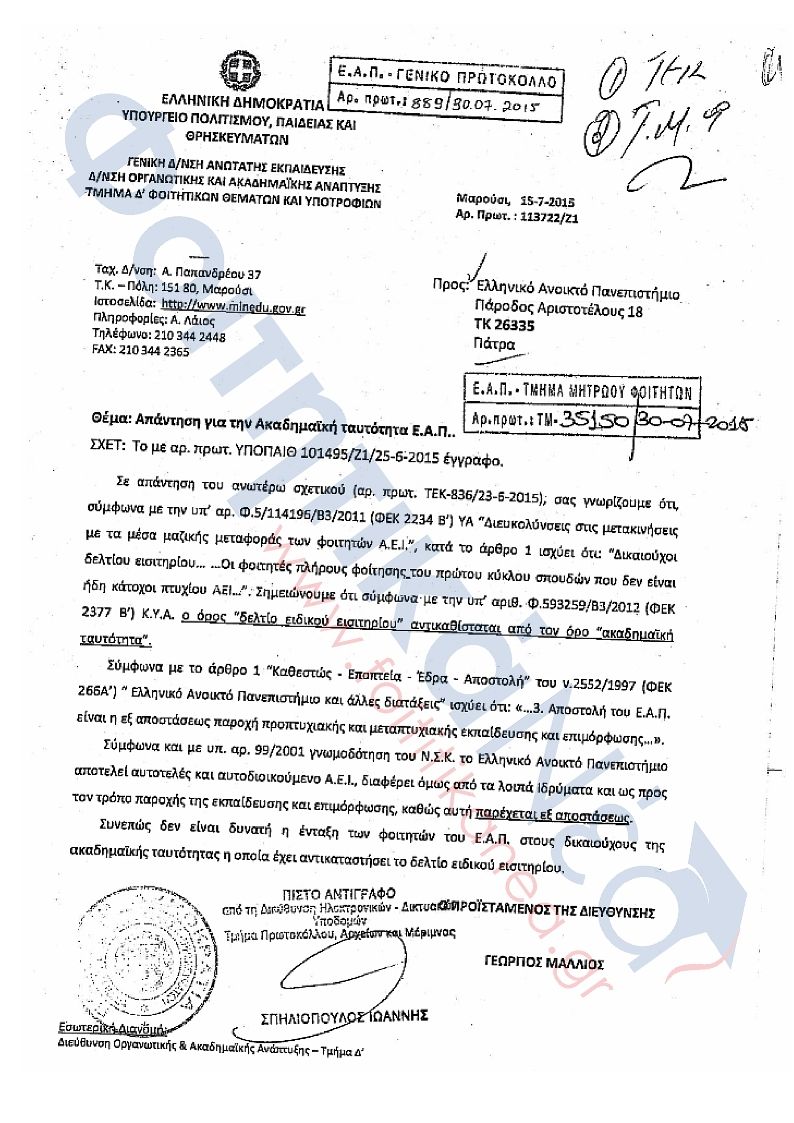 Φοιτητικό πάσο και για τους σπουδαστές των ανώτατων σχολών τουριστικής χωρίς φοιτητικό πασό οι πρωτοετείς φοιτητές στα μέσα μαζικης μεταφοράς με την βεβαίωση.